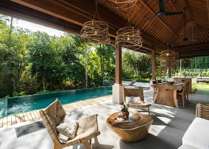 Le quartier donne accès à des commerces tels que le Marché d'Ubud, situé à 2 km. Nichée dans la localité de "Peliatan", villa se trouve à environ 25 à pied des sites historiques comme le Palais d'Ubud.